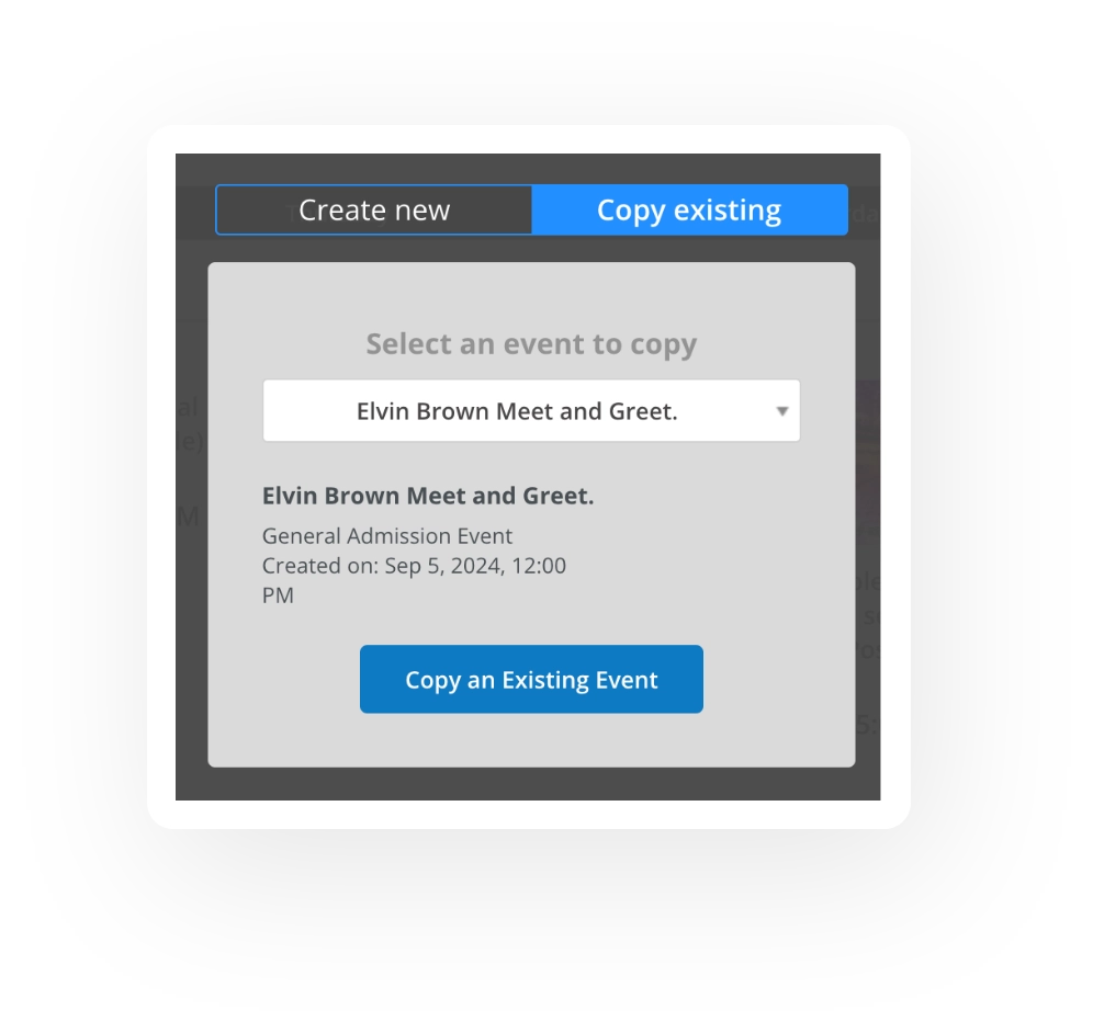 Save time by duplicating an existing event setup. This feature allows you to quickly create a new event with the same settings, reducing the need for repetitive work.