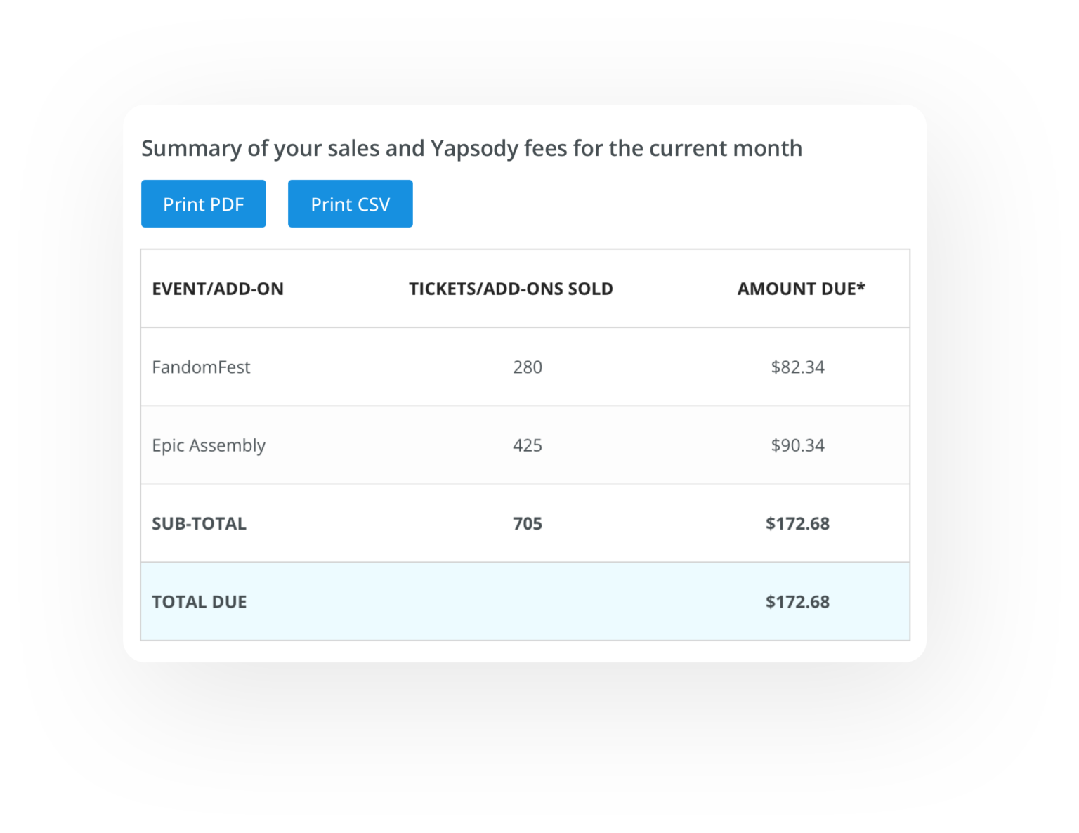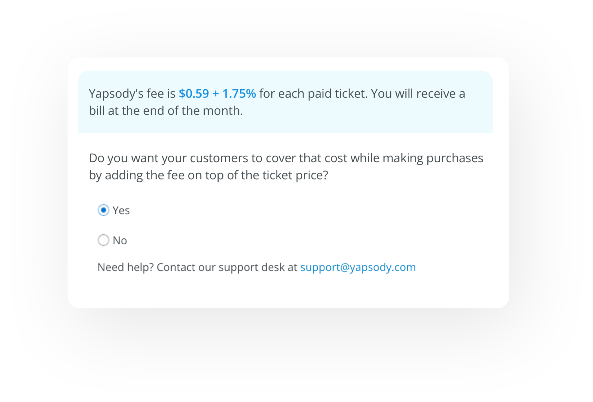 Yapsody offers flexible billing options for events. Customize payment methods, set up various billing plans, and manage transactions effortlessly.