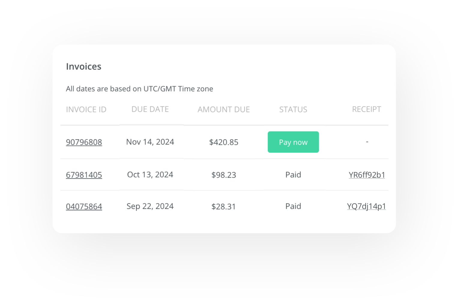 Receive detailed monthly invoices for a clear overview of your event’s financials. This option helps you keep track of all charges and payments in a structured format, simplifying budget management and financial planning.